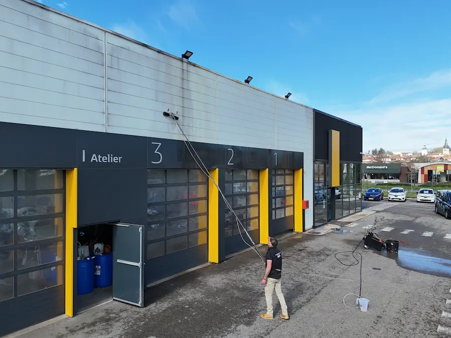 Nous intervenons de 200m² (petit commerce) à plusieurs milliers de m² (hypermarchés, entrepôts logistiques). Comptez environ 500 à 800m² traités par jour selon la complexité. Un supermarché standard (1500m²) sera nettoyé en 2 jours maximum, contre 5 à 7 jours avec des méthodes traditionnelles nécessitant échafaudages.